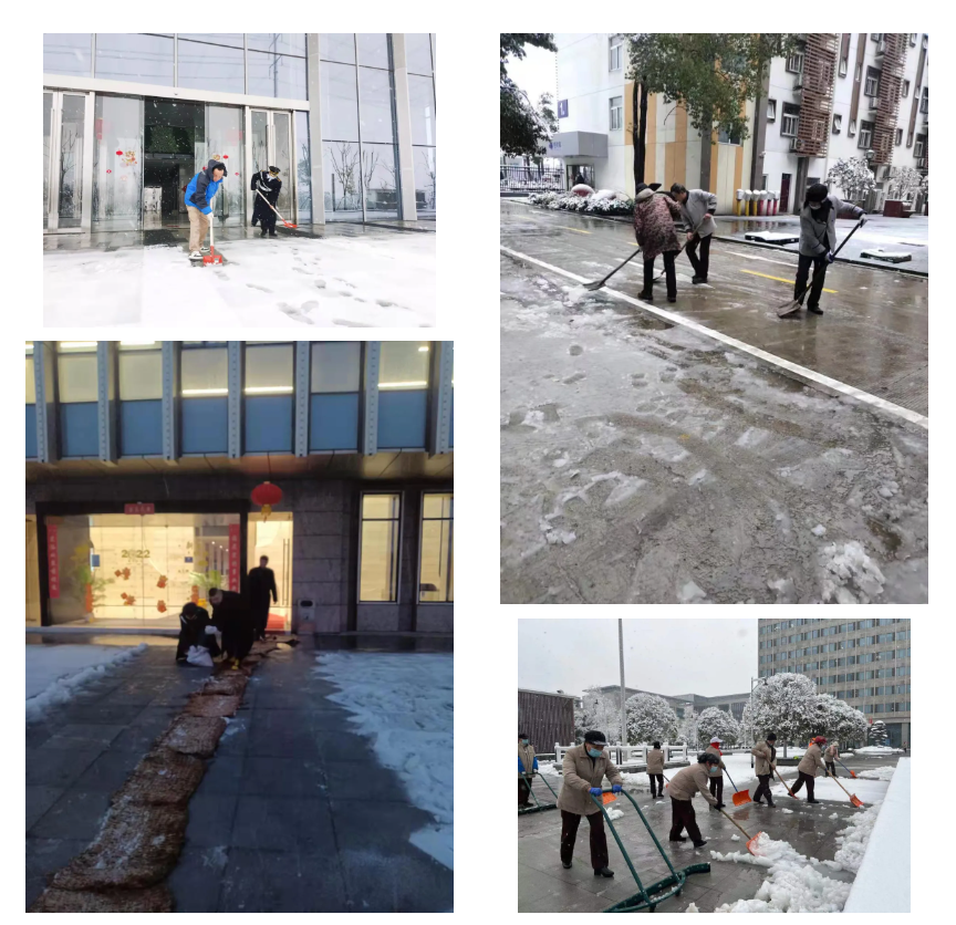 在夜色中,100多名物業(yè)員工帶著鐵鍬、掃帚等工具忙碌在光谷公共服務(wù)中心、光谷軟件園、鳳凰山公租房、聯(lián)想家園、光谷長江青年城等在管項(xiàng)目。清理主干道、鋪草墊、撒融雪鹽……大家團(tuán)結(jié)協(xié)作,不畏嚴(yán)寒,經(jīng)過大家的不懈努力,路面上的積雪均被清理干凈,保障了項(xiàng)目內(nèi)主要道路的通暢和安全,消除了隱患,為園區(qū)企業(yè)員工的安全出行帶來了便利,用我們的行動(dòng)詮釋了服務(wù)企業(yè)的初心,更是傳遞了一份溫暖和正能量。