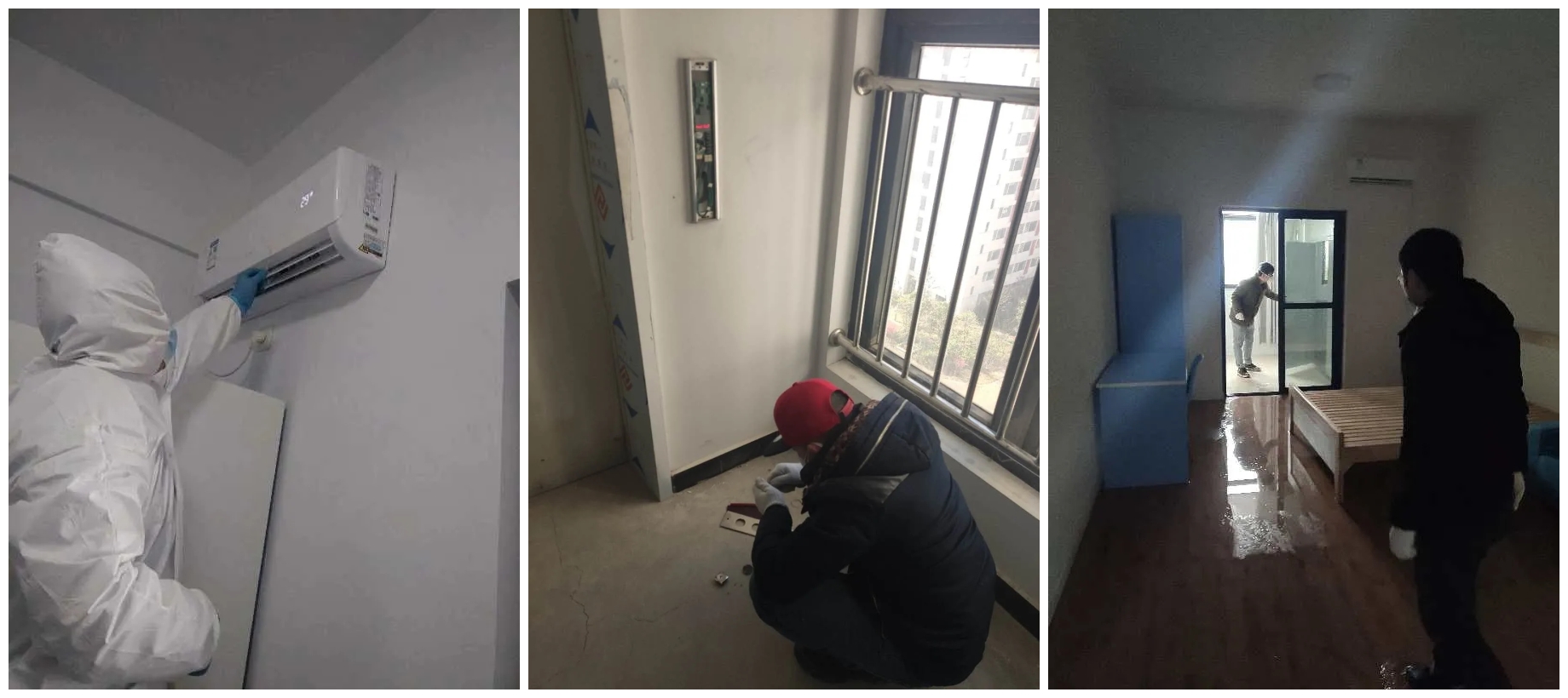 ⊙2月14-17日,72個(gè)小時(shí),1654間房間,檢查門鎖、房間供水、供電,檢查衛(wèi)生間上下水、熱水器、空調(diào)、照明,掃地、拖地、消毒、抗被子、整理床鋪、按標(biāo)準(zhǔn)擺放50余件/間生活用品,安裝洗衣機(jī)、烘干機(jī)……這速度,堪稱奇跡,見證了這群”抗疫鋼鐵俠“的爆發(fā)力。