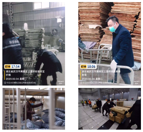 2月4日下午,接到高新區(qū)管委會(huì)指令后,科投物業(yè)12名工作人員迅速集結(jié),疫情就是命令,工作人員第一時(shí)間奔赴黃陂,連續(xù)奮戰(zhàn),完成1000張床鋪安裝和鋪設(shè)工作,為疫情的防控貢獻(xiàn)自己的力量。